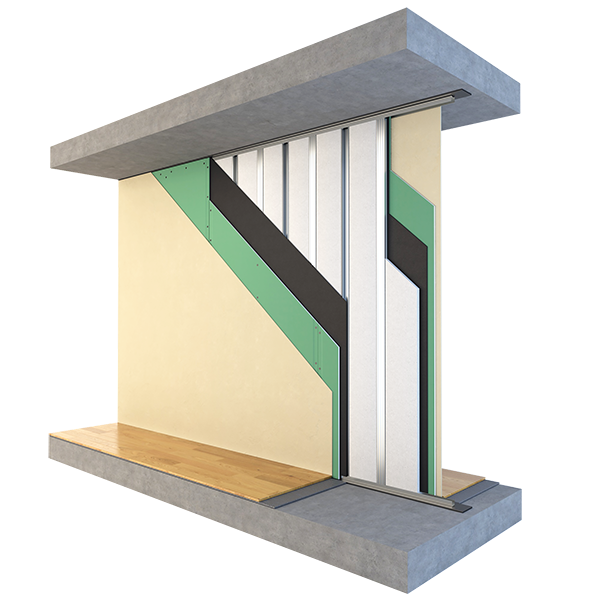 Перегородки данной серии особенно эффективны в помещениях с небольшой площадью и слабым звукоизолирующим устройством стенок. Обладая малой толщиной, данная конструкция обеспечивает хорошую звукоизоляцию на средних частотах.